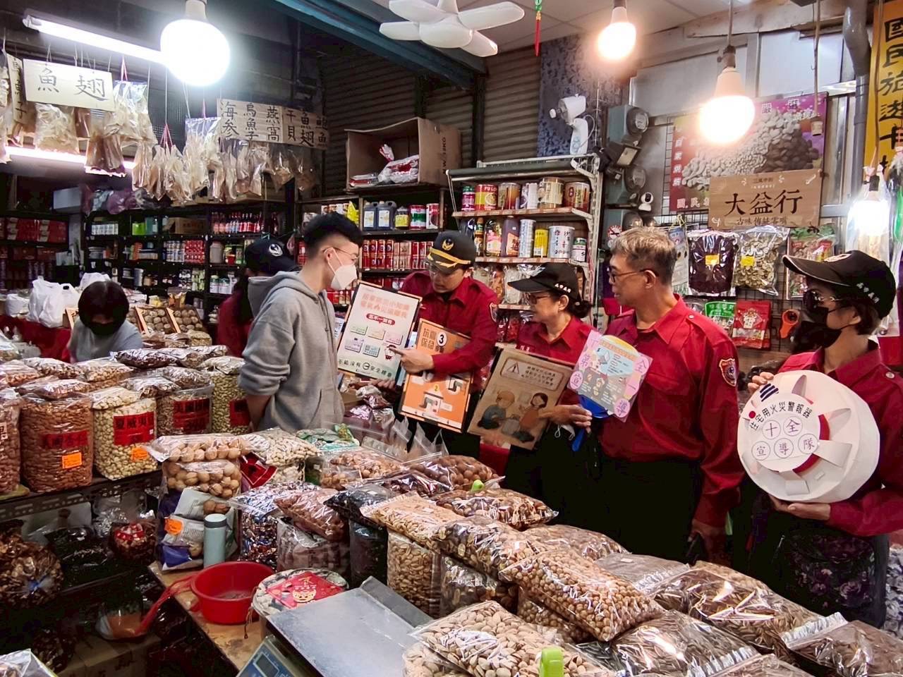 高雄市三民區三鳳中街是相當熱鬧的乾貨商圈,接近過年時,採購人潮和店家備貨量都明顯增加。為了提醒店家注意防火安全,十全消防分隊於本(2)日下午14時,走進三鳳中街,藉由防火宣導文宣向店家分享實用的防火知識。店家平時在營業時,最重要的就是用火、用電安全。電器設備不要長時間使用,也避免同時插太多電器,平常就要多留意電線是否老舊、破損或堆積灰塵,才能減少電線走火的風險。過年備貨多,店內貨品容易堆積,也請店家記得把走道、出入口保持暢通,不要堆放雜物,萬一發生狀況,才能第一時間安全疏散。