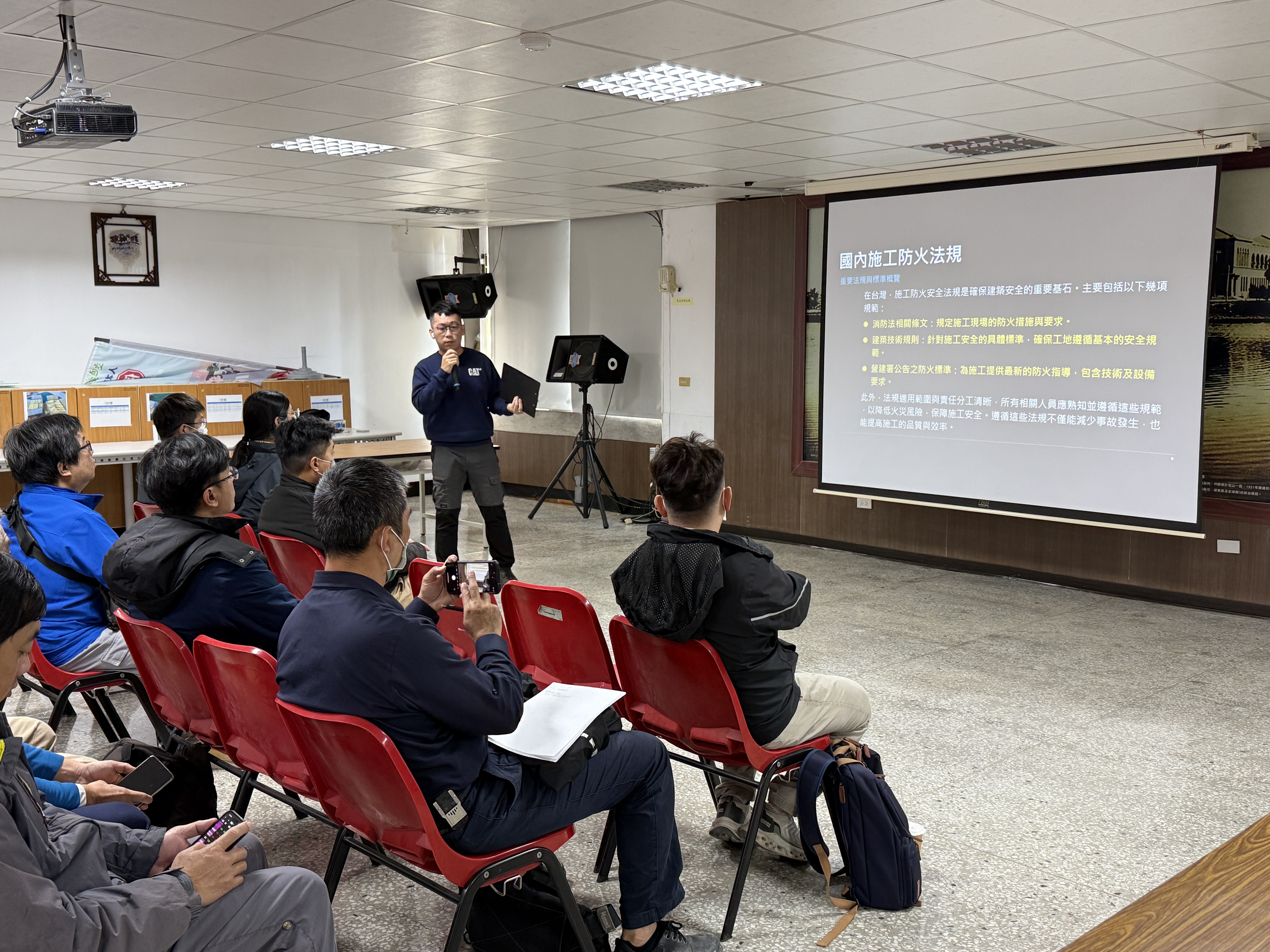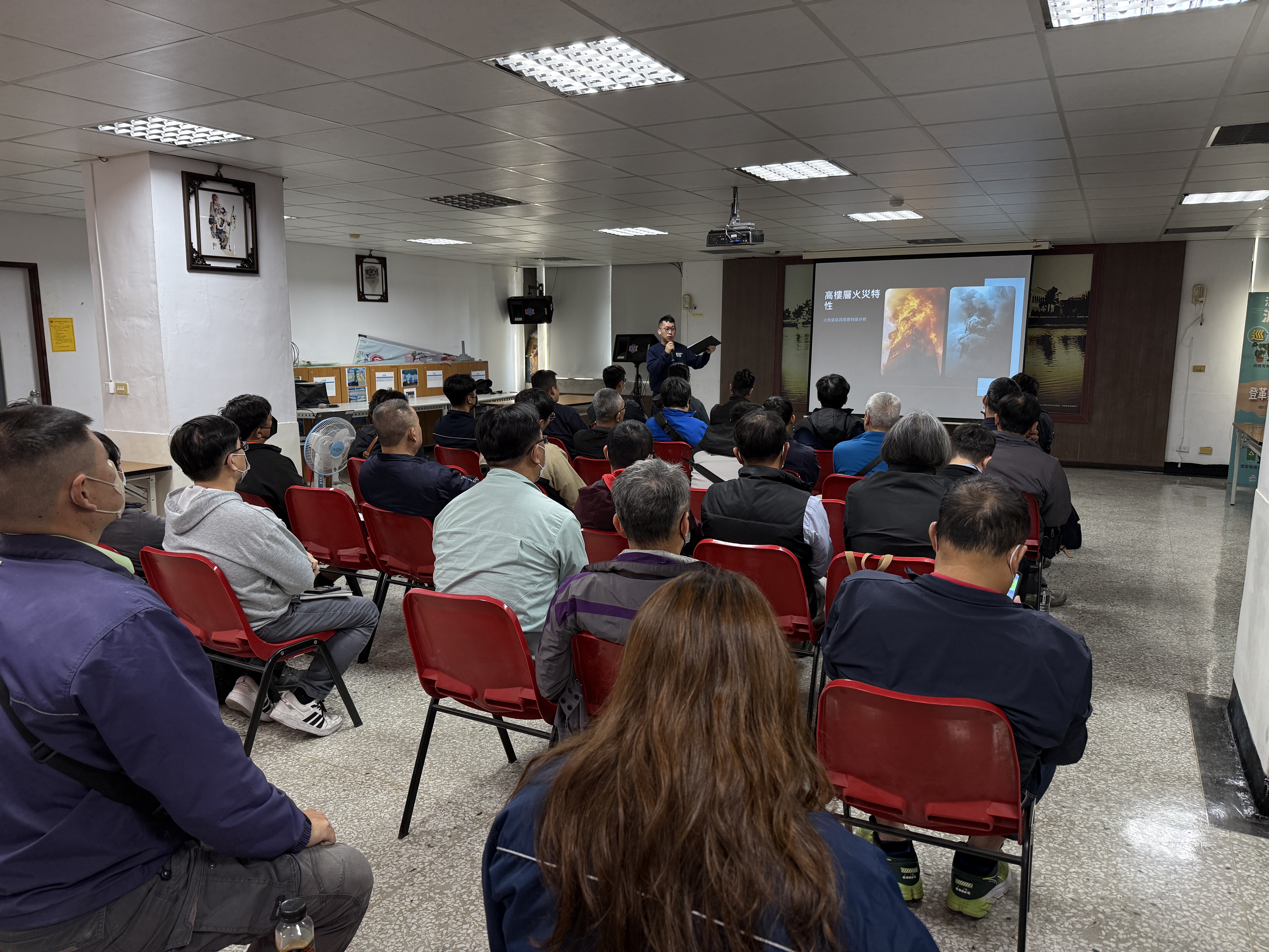 座談會中,消防人員深入淺出地解說施工中建築物火災風險,並針對近期國內外發生的工地火災案例進行分析。第一大隊特別強調,施工現場應加強防火安全管理,內容包含火源管理、易燃物料儲放規範、人員定期消防演練及訂定火災緊急應變計畫;此外,會中也指導業者如何強化「高樓層火災」應變能力,確保火災發生初期能迅速報案、疏散人員並進行初步滅火,將損害降至最低。