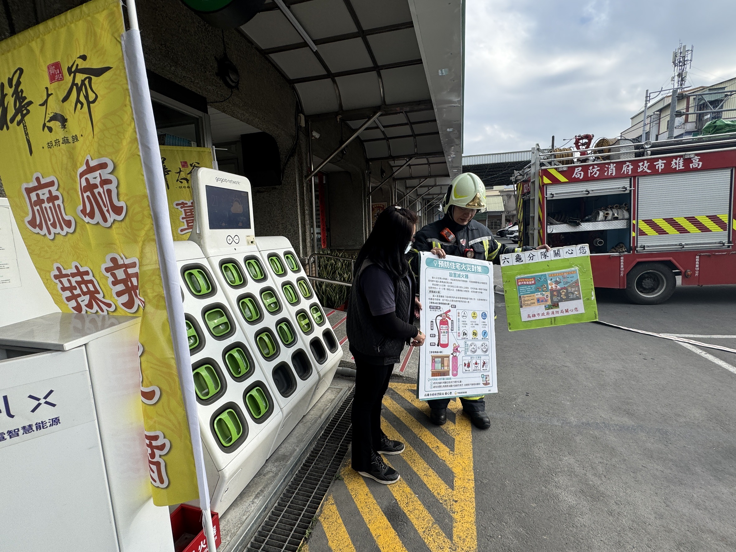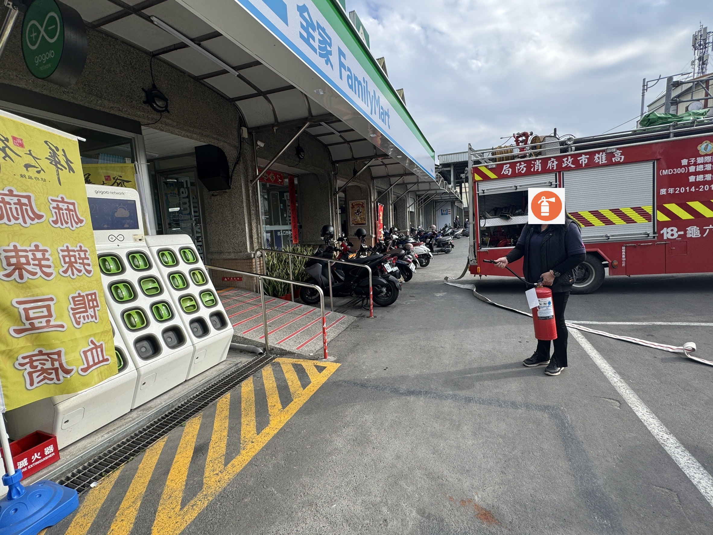 有鑑於去年高雄市某加油站旁的Gogoro電池交換站爆炸起火,為強化消防人員執行電動車電池交換站火災搶救應變能力,同時提升架設電池交換站業者對於電池火災的自主防災緊急應變能力,高雄市政府消防局第六大隊六龜分隊於轄區內兩處電動車電池交換站實施火災事故搶救演練以及消防安全宣導。
