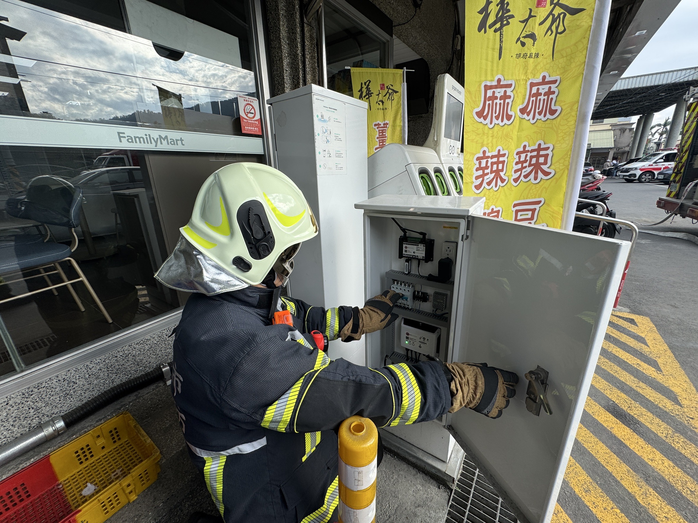 當電池因過熱或接觸不良發生火災,員工應立刻切斷電源,以乾粉滅火器進行初期滅火,並協助聯絡電池交換站維修人員到場;除此之外,自身安全也需格外注意,滅火時應隨時注意周圍是否有異常狀況,但若有下雨積水,則切勿接近電池交換站或踩踏積水處,以避免觸電。
