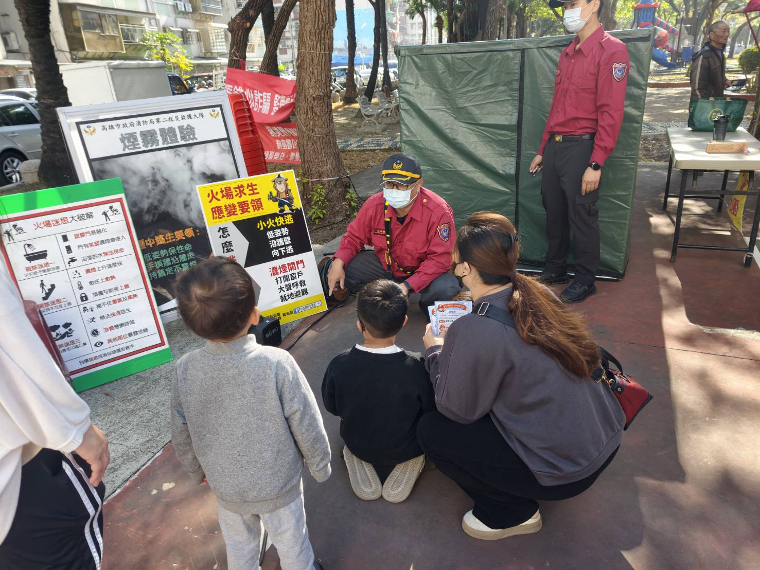 本次活動規劃五種消防體驗關卡,包含「消防小博士」靜態宣導、「變身小小消防員」消防衣體驗、「濃煙逃生王」煙霧屋體驗、「火焰怪獸退散」水滅火器操作,以及「愛心救援隊」CPR+AED 教學,讓民眾在輕鬆有趣的互動中,實際學習火災預防、火場求生應變與基本急救技能。