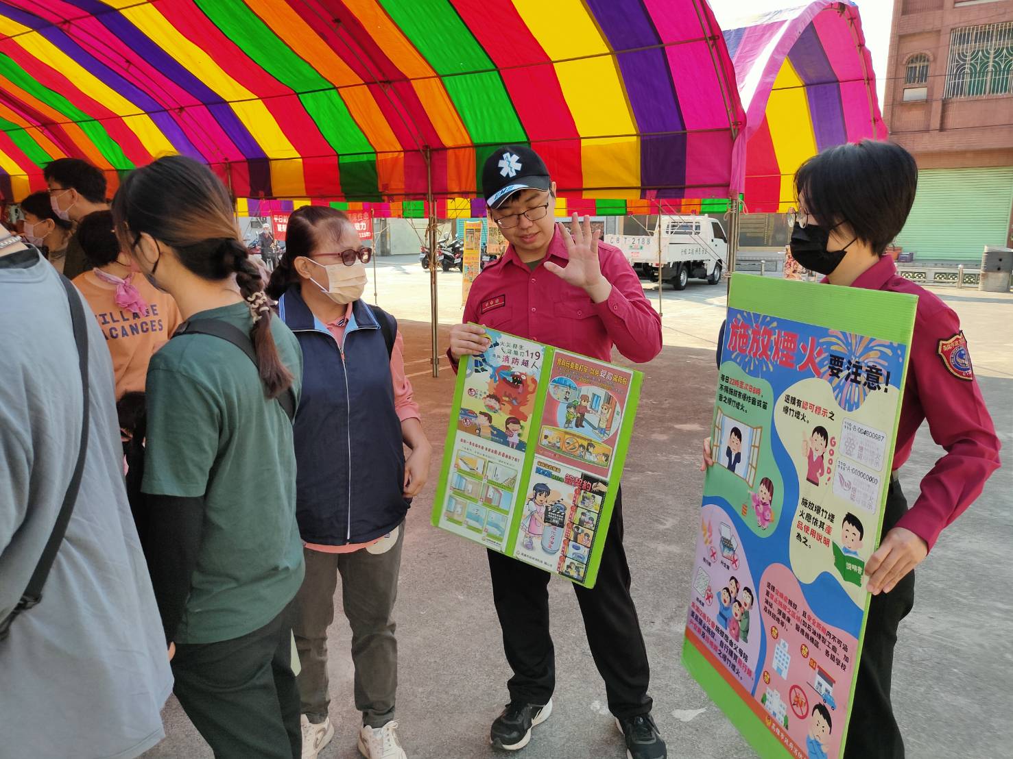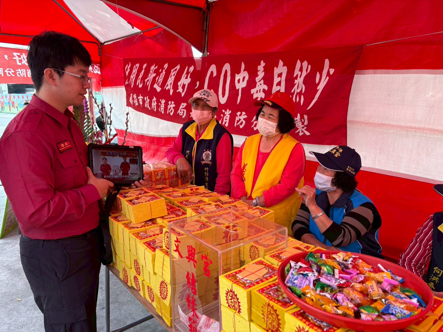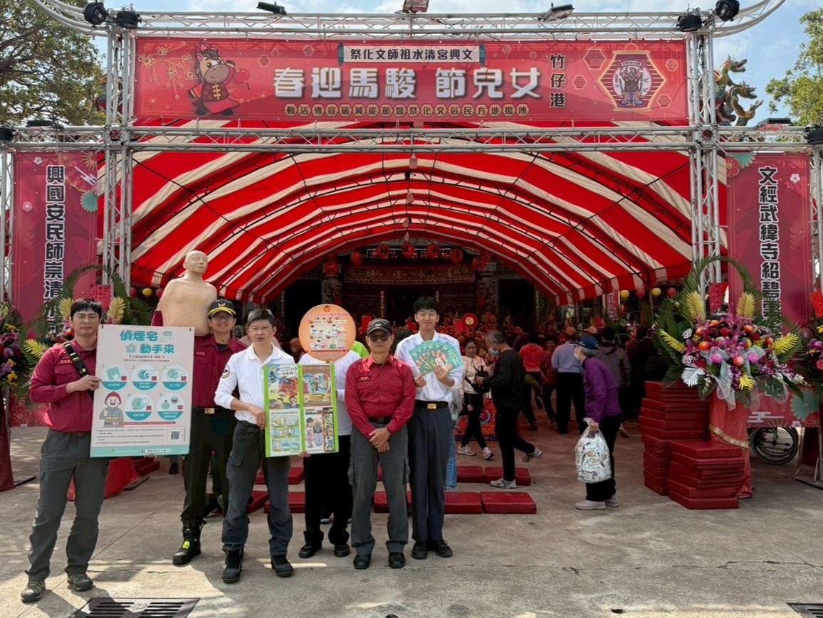 高雄市政府消防局永安分隊於清水祖師聖誕慶典期間,前往永安區在地信仰中心—文興宮,針對來參香祝壽的信眾實施防範一氧化碳中毒及居家防火宣導。現場熱鬧非凡,消防人員與義消通力合作,在民眾祈求神明保佑的同時,也將重要的居家安全知識深植民心。