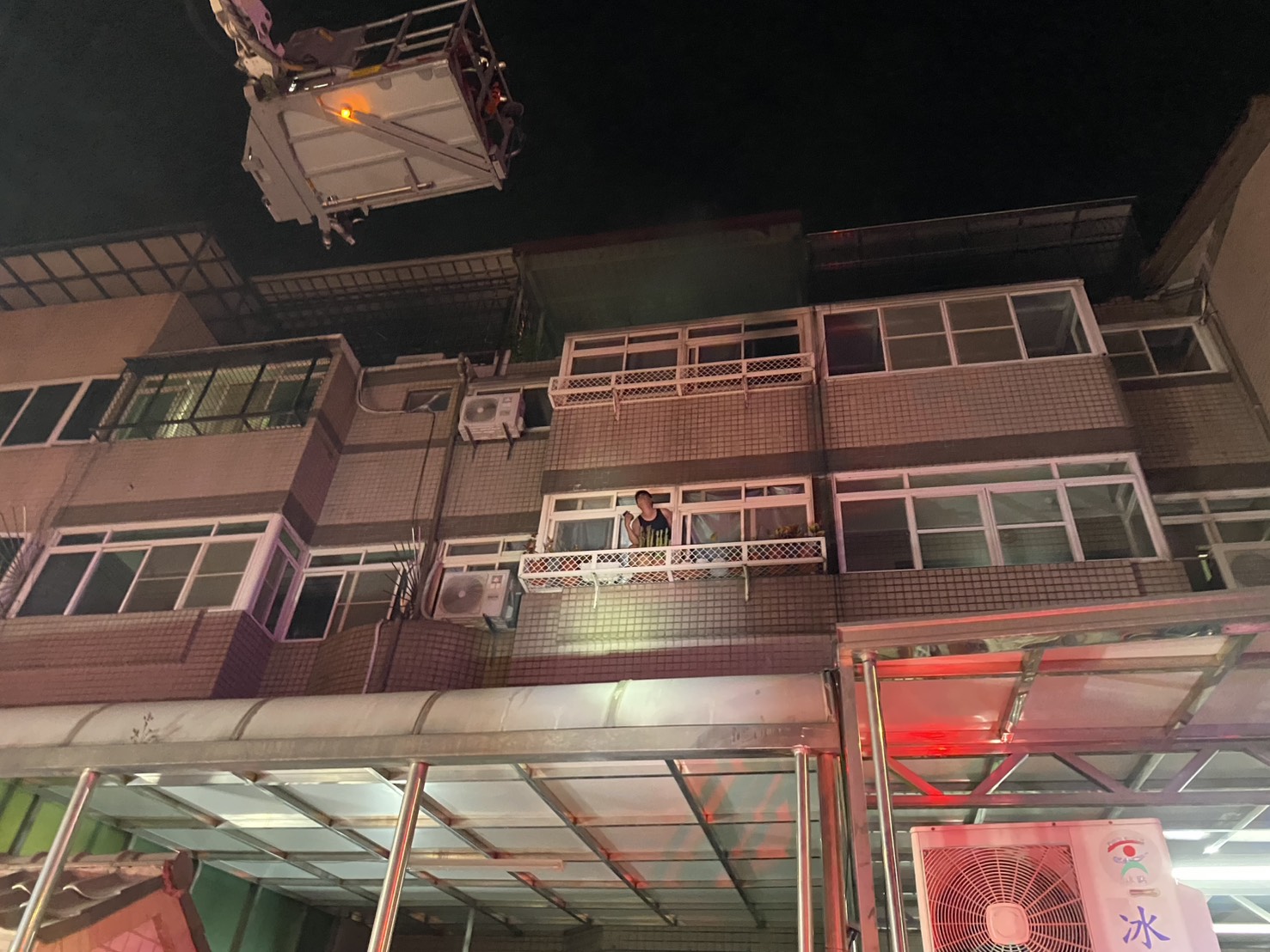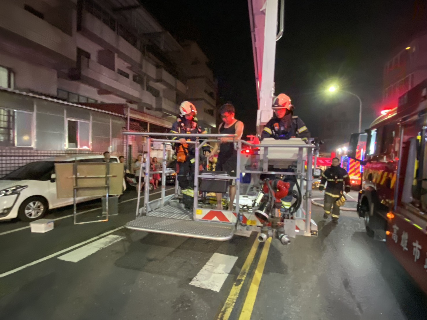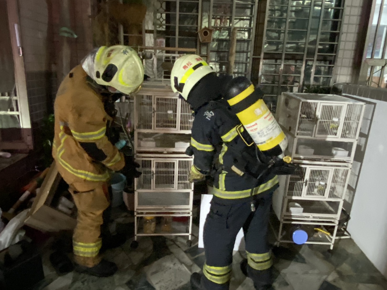 消防人員抵達現場後,發現起火建築物2樓有一名民眾待救,立即部署水線入室搶救,同時雲梯車升起籃架展開救援,順利將民眾安全救出送達地面。獲救民眾表示,火災發生時他受困於2樓,當時察覺室內逐漸瀰漫濃煙,於是迅速關閉房門阻隔濃煙入侵,並退避至陽台等待救援。而火勢熄滅後,消防人員在清理火場時意外發現屋主飼養的寵物鸚鵡尚有氣息,一併被安全救出。