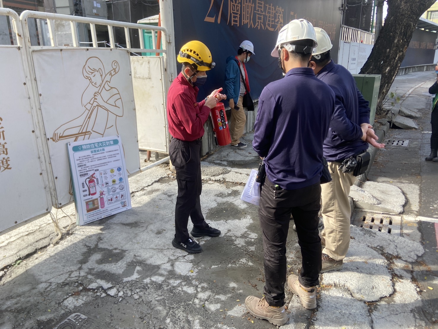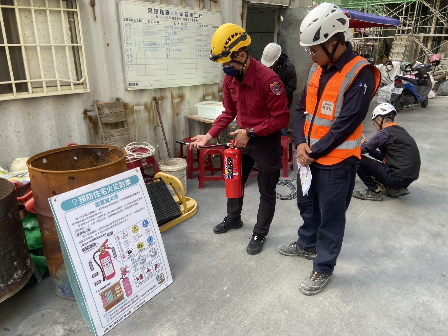 - 自衛消防編組:指導工地建立緊急應變機制,明確分工通報、滅火及疏散引導任務,避免災時慌亂。