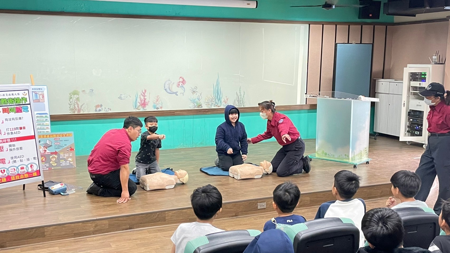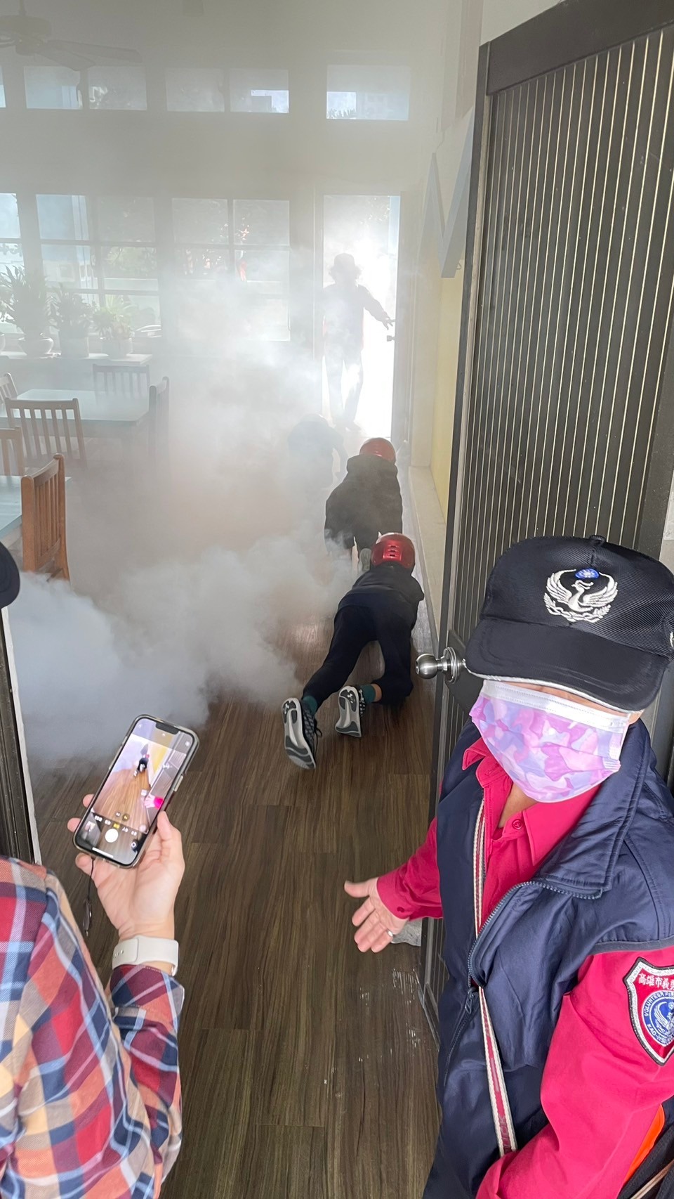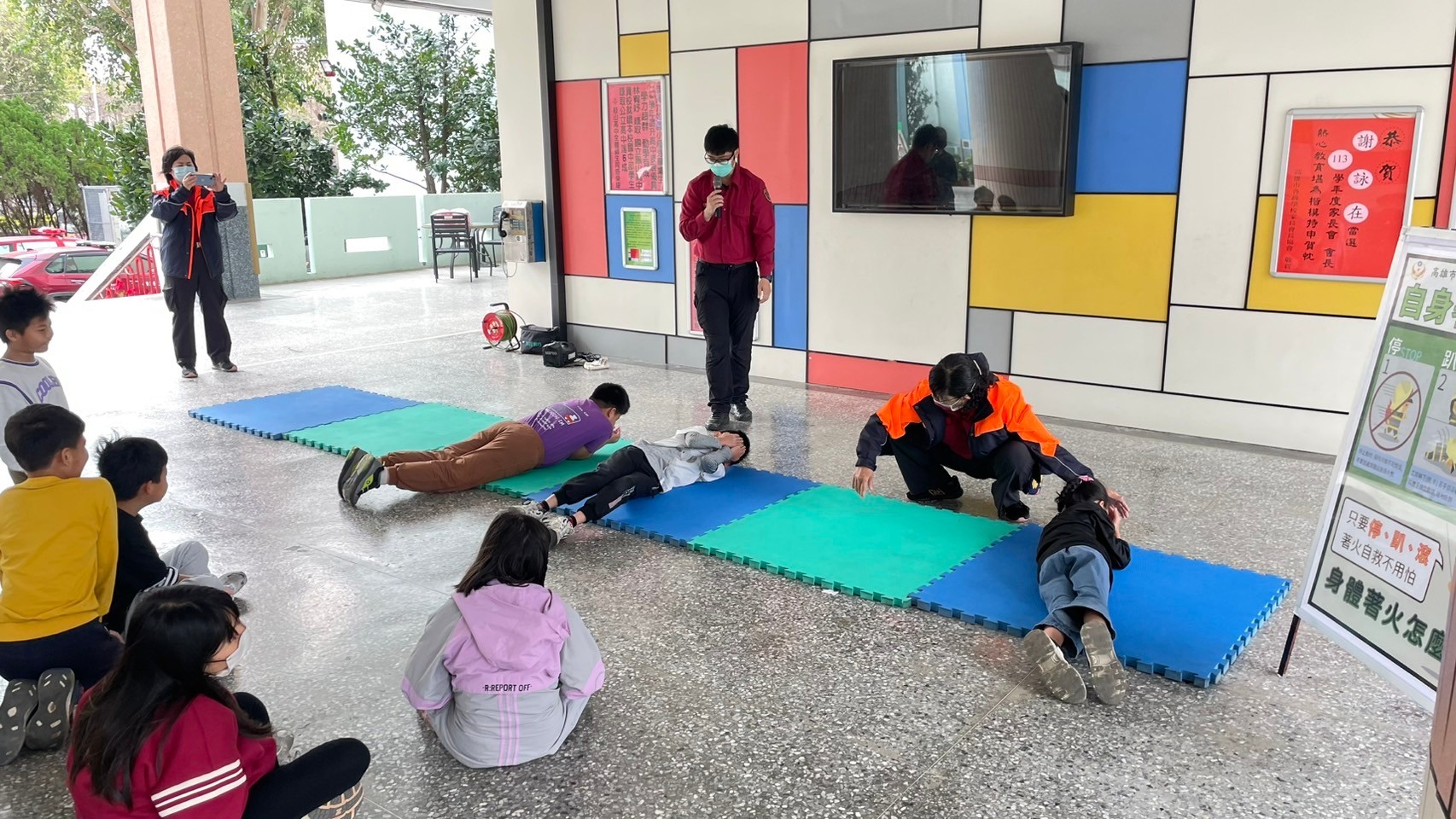 活動內容包括“防災常識宣傳”、“用火用電安全認識”、“住宅用火災警報器”、“CPR體驗”、“煙霧體驗”“身體著火:停、趴、滾”等。當孩童親自通過煙霧體驗時,彷彿當下在火場逃生,今日的體驗讓孩童及老師玩的不亦樂乎。