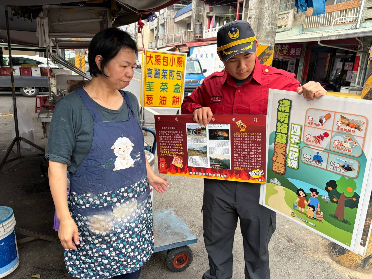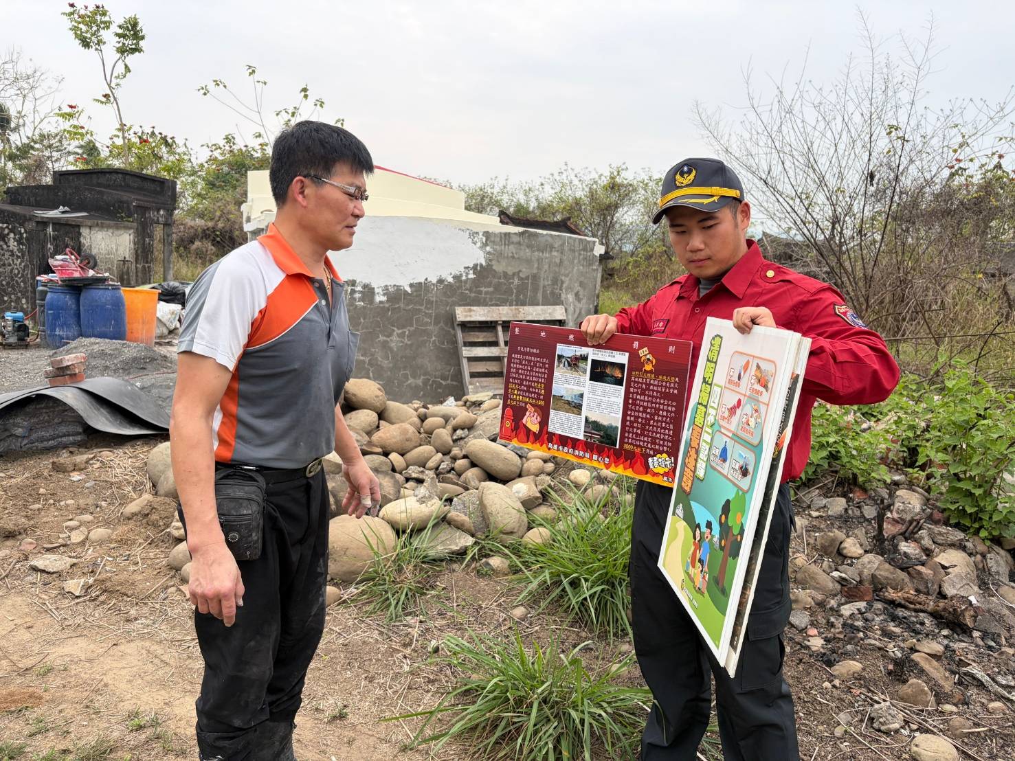 為提升民眾防火警覺,杉林分隊於228連假前開始深入社區宣導「4不2要」防火原則;期間則於各公墓主要出入口架設廣播設備,以客家語及閩南語持續提醒民眾「不隨意焚燒雜草」及「務必撲滅餘燼」,讓防火觀念在掃墓行程中自然落實。