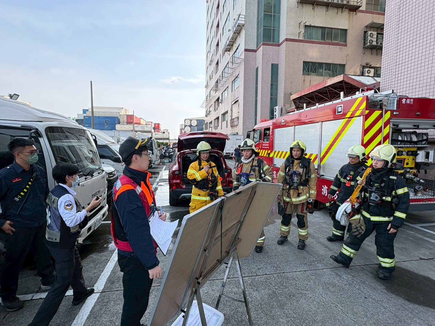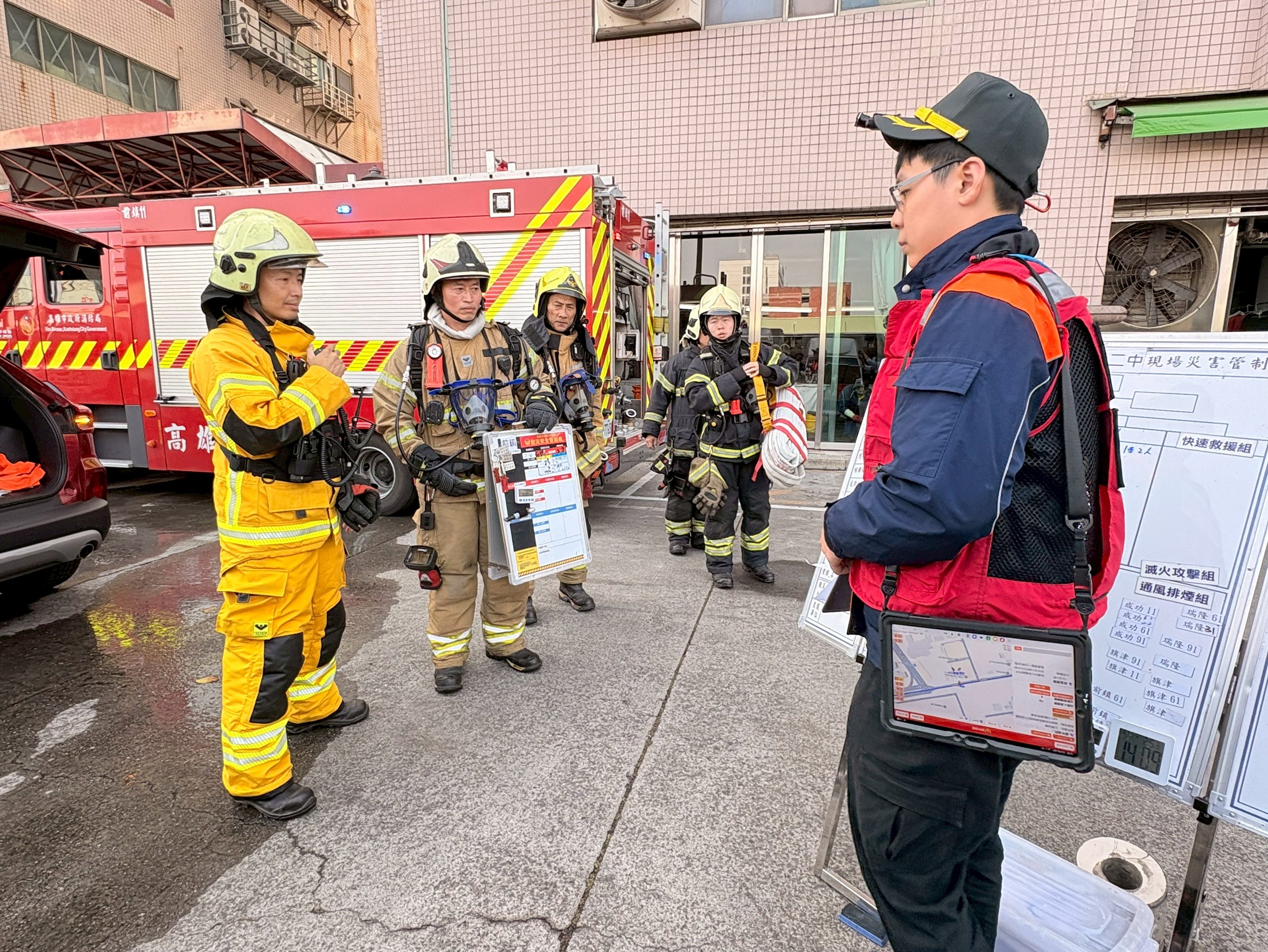 另在本次演練中,也同時強化並落實「入室安全管制」與「團進團出」的戰術紀律,並實施明確的「進入時間(氣量)控管與輪替機制」,適時安排梯隊交替,以維持人員體能與專注度,落實高風險火災現場的整體安全維護。