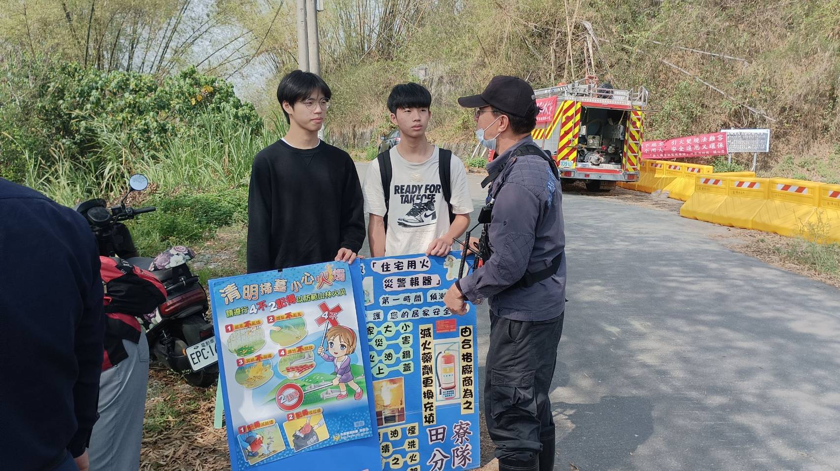 田寮消防分隊呼籲民眾共同實踐防火觀念,將「掃墓不用火」融入祭祖活動中:除草「不」用火、紙錢「不」燃燒、爆竹「不」燃放、菸蒂「不」亂丟、垃圾「要」帶走,這樣才能真正遠離墓地山林火災的威脅,我們對祖先的敬意不變,掃墓活動也可以與時俱進,讓我們一起實行「掃墓不用火 環保又平安」!