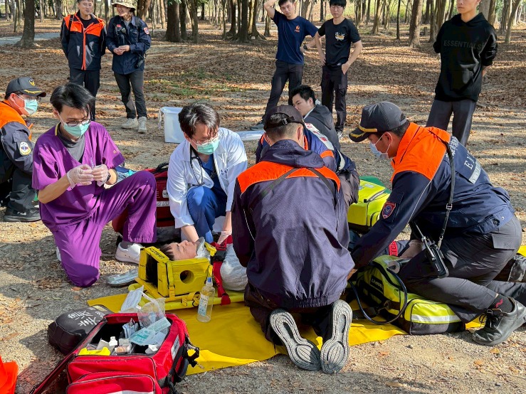 中隊長林志遠表示,隨著地方大型活動增加,維護高人流活動安全至關重要。本次演練情境設計包含大出血、頭部與腹部創傷等實務案例,消防人員完成脫困與初步處置後,由旗山醫院團隊接手進行超音波檢查、插管及藥物處置等進階醫療操作。