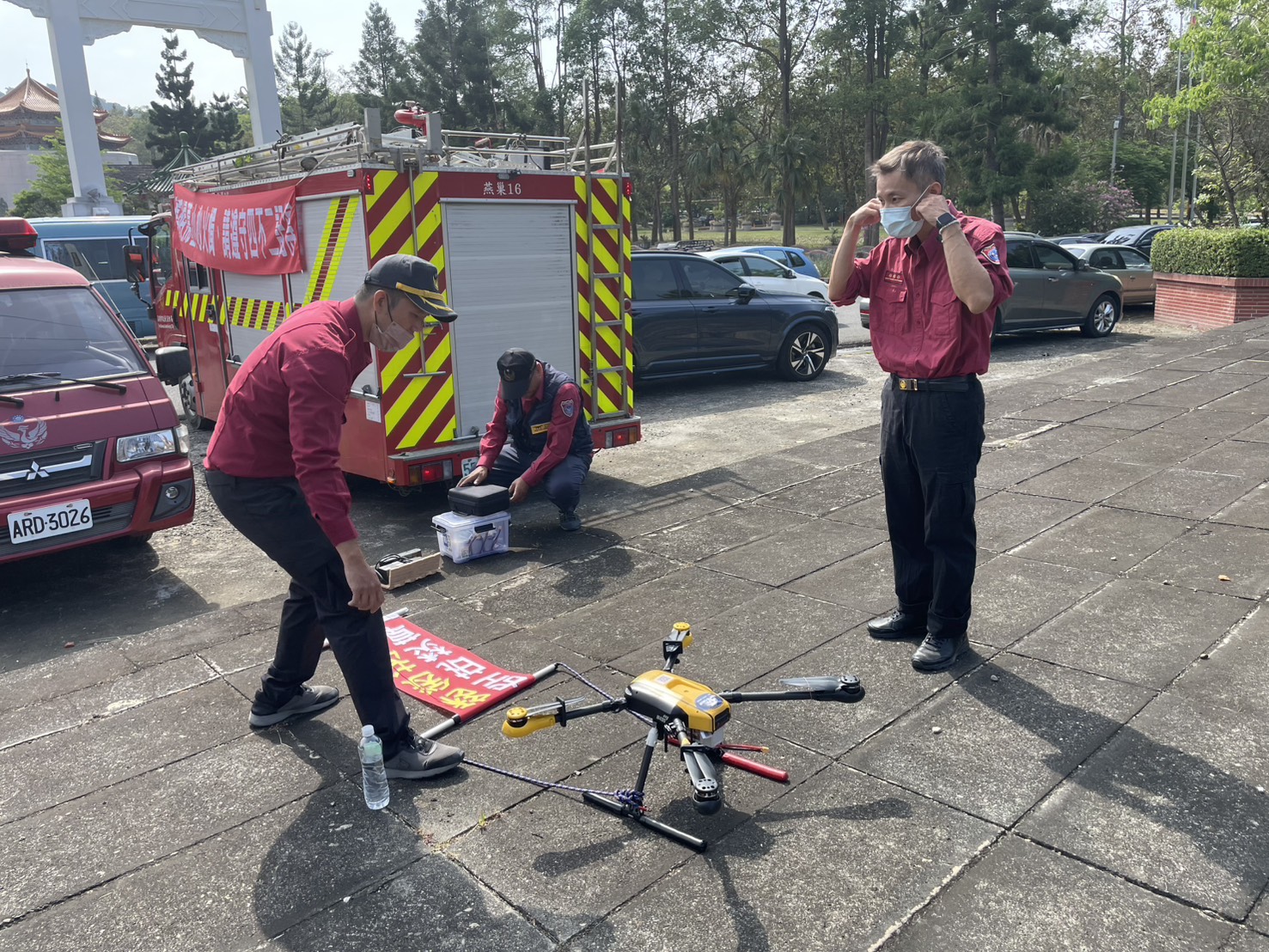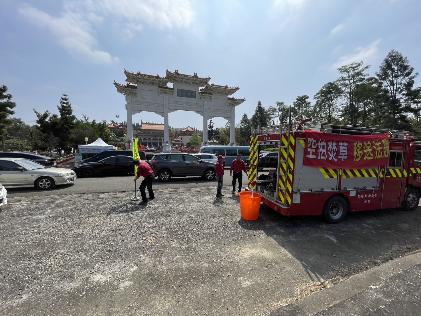 每逢清明節期間,因燃燒紙錢、焚香等行為,墓區周邊容易引發火災事故,且祭祀遺留的垃圾也對環境造成負擔。為此燕巢分隊今年特別引進無人機進行空中監控、懸掛標語,並藉由語音廣播等宣導方式,提醒民眾掃墓務必遵守「四不一要」——除草不動火、紙錢不燃燒、爆竹不燃放、菸蒂不亂丟、垃圾要帶走等要領,落實墓地防火安全。